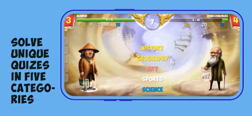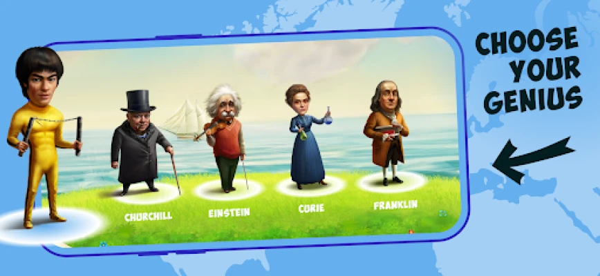 V Battle of Geniuses se stanete legendou vědění, když povedete ty největší mysli historie. Ovládnete historické otázky s Churchillem, nebo budete s Galileem dominovat v zeměpise? Odemkněte si rozsáhlou soupisku ikonických osobností ze všech oborů lidského poznání. Každý génius je unikátní postava s vlastními dovednostmi a silnými stránkami, což zaručuje, že každý duel je jedinečný. Zážitek pravého RPG se projeví s každým vítězstvím, které vaše hrdiny posune na vyšší úroveň. Sledujte, jak se z historických postav stávají mýtičtí válečníci mysli, vybavujte je mocnými předměty a odemykejte nové dovednosti, abyste si přizpůsobili svůj herní styl. Je to transformace mozku, která činí učení návykovým a zábavným.