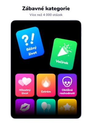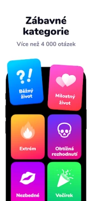 S Dilemmaly - Co bys radši? se nikdy nebudete nudit díky ohromující rozmanitosti kategorií. Odlehčete si u každodenních situací, z nichž některé jsou vtipné a jiné k zamyšlení, ponořte se do hlubokých milostných otázek, nebo se odvažte prozkoumat extrémní scénáře, které prověří vaše hranice. Každý balíček přináší nové výzvy a témata, pečlivě navržené tak, aby oslovily každého – bez ohledu na věk či preference. Objevujte nové perspektivy a užívejte si, jak snadno vás aplikace vtáhne do hry.
