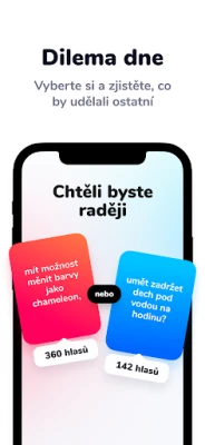 Dilemmaly - Co bys radši? nabízí zábavná a náročná dilemata pro celou rodinu a přátele. Rozhodni se v otázkách, které tě potrápí, bav se a srovnávej své odpovědi s ostatními hráči. Objev tisíce jedinečných scénářů.