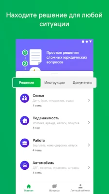 Čelíte často právním otázkám, na které hledáte rychlé a srozumitelné odpovědi? Aplikace «Юрист в Кармане» je vaším spolehlivým digitálním právním poradcem, který vám pomůže rozlousknout složitosti české legislativy. Poskytuje komplexní pokyny v celé řadě klíčových oblastí, od rodinného práva a záležitostí s nemovitostmi, přes pracovní vztahy a automobilové předpisy, až po dědictví, daně, úvěry, důchody či imigrační a zdravotnické otázky. S více než 120 podrobnými návody, které se neustále aktualizují a rozšiřují, získáváte vždy aktuální a relevantní informace – od vrácení zboží v obchodě po rozdělení majetku při rozvodu.