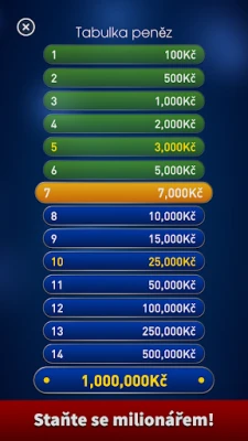 **Milionář 2025: Český Kvíz** není jen pouhý kvíz; je to studnice cenných a mnohdy málo známých informací, které vám rozšíří obzory. Každá správná odpověď, doprovázená zajímavým vysvětlením, vás obohatí a vzdělává. Hrajte vlastním tempem, bez nutnosti čekat na ostatní, a pozorujte, jak se obtížnost otázek dynamicky přizpůsobuje vašemu pokroku, znázorněná bílými stupnicemi. Přijměte intelektuální výzvu a pokuste se překonat své přátele v honbě za miliony – vítězství si žádá bystrý úsudek i špetku štěstí! Užijte si nekonečnou zábavu a rozšiřování svých znalostí.