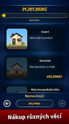 Objevte zbrusu nový režim SUPERMILIONÁŘ, který přepisuje pravidla: čelte 25 otázkám, využijte 5 cenných nápověd a usilujte o fantastickou hlavní výhru 5 milionů! Je to zážitek, jaký jste dosud nepoznali. Pro milovníky klasiky je připraven i tradiční režim s 15 otázkami a možností stát se milionářem s výhrou 1 000 000. Navíc, za své získané body můžete nakupovat exkluzivní předměty, vozidla a dokonce i virtuální nemovitosti, což dodává hře další rozměr.