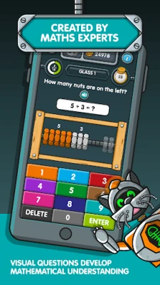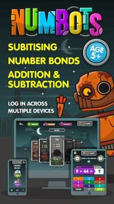 NumBots: sčítání a odčítání vyřešeno. Tato poutavá aplikace pomáhá dětem ovládnout základy aritmetiky s cílem dosáhnout pochopení, vybavení si a plynulosti v mentálních výpočtech. Děti se posunou od pouhého počítání k vypočítávání. Ideální pro předškoláky a mladší školáky.